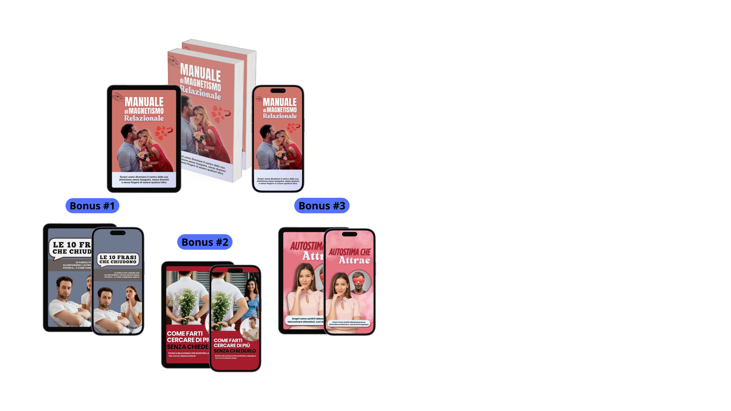 Il Manuale di Magnetismo Relazionale è la prima guida che ti regala il meglio di due mondi: Il potere irresistibile di essere desiderata... E i benefici di una comunicazione che funziona davvero senza drammi o manipolazioni! Nato dalla frustrazione nel vedere donne che si sentono invisibili, che inseguono attenzioni che non arrivano, che provano tecniche complicate e consigli che non funzionano mai... Il Manuale di Magnetismo Relazionale è la prima guida progettata non solo per essere semplice da applicare quanto seguire una ricetta, ma anche per essere una vera e propria arma segreta per riconquistare il tuo potere femminile! Che tu sia in coppia da anni e ti senta data per scontata, o che tu sia innamorata di qualcuno che non ti nota abbastanza... Finalmente puoi diventare il centro della sua attenzione senza inseguire, senza drammi e senza fingere di essere qualcun'altra. Scopri come riattivare il desiderio, l'ascolto e la reciprocità in modo naturale e duraturo.